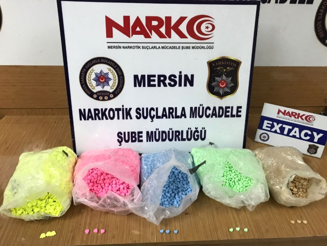 Mersin Emniyet Müdürlüğü Narkotik Suçlarla Mücadele Şube Müdürlüğünce 3 ay süren teknik takipli çalışma sonuç verdi. Farklı illerden getirdikleri yüksek miktarlarda uyuşturucu maddelerin torbacıları aracılığı ile satışını yapan suç örgütüne yönelik yapılan operasyonda 14 kişi yakalandı. Operasyonda 65 kilogram esrar, 109 ecstasy hap, 30 gram metamfetamin ve 4 gram kokain ele geçirildi. Sorgulanan sanıklar mahkemeye çıkartılırken 3 kişi tutuklandı, 11 kişi tutuksuz yargılanmak üzere serbest bırakıldı. Zanlıların verdiği ifadeden yola çıkan ekipler 2’nci bir operasyon yaptı. Operasyon kapsamında eş zamanlı olarak 14 kişi yakalandı. 15 bin 948 ecstasy hap, 85 gram esrar, 1 sahte nüfus cüzdanı ve uyuşturucu ticaretinden elde edildiği değerlendirilen 8130 TL para ele geçirildi. Mahkemeye çıkartılan zanlılardan 8 kişi tutuklanırken diğer sanıklar tutuksuz yargılanmak üzere serbest bırakıldı.